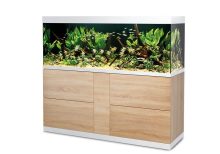 A HighLine 600 tölgy akváriumkombináció, amely egy édesvízi akváriumból és egy tökéletesen illeszkedő alapszekrényből áll. A zöld árnyalat nélküli fehér üveg tökéletes rálátást biztosít az állatokra és a növényekre. |