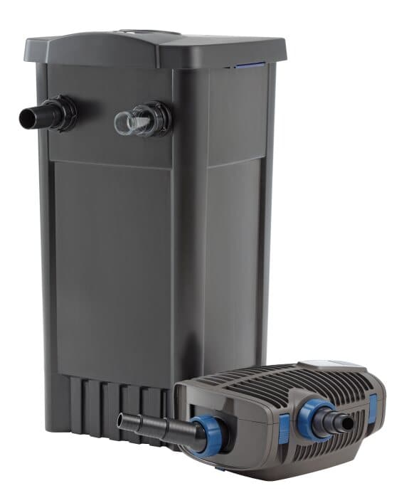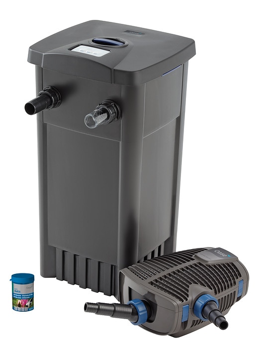 Egyedülálló csapatteljesítmény intelligens tókezelővel – FiltoMatic CWS Set 14000. Az AquaMax Eco Premium 7000 szűrőszivattyú és a FiltoMatic CWS 14000 tószűrő együttesen távolítja el a tápanyagokat és a zavarosságot az akár 14 m³-es vagy 7 m³-es halastóból. Akár 40% villamos energiát is megtakaríthat, mivel nemcsak a szivattyú, hanem különösen a szűrő is rendkívül energiatakarékos. Intelligens vezérlőegysége csak szükség szerint aktiválja a beépített 24 wattos UVC előklárítót és a praktikus öntisztító funkciót. Még a szűrő teljesítményét is növelheti: Egyszerűen csatlakoztasson egy OxyTexSet 1000-et 17 m³-ig terjedő tavakhoz vagy 8,5 m³-ig terjedő halastavakhoz. Megbízható OASE minőség: Kérésre 2 plusz 1 év garanciát kap, valamint az OASE tiszta víz garanciát.