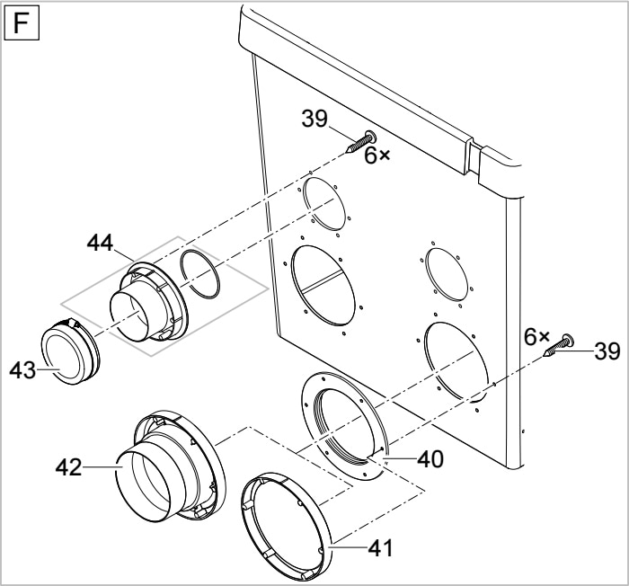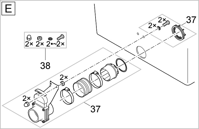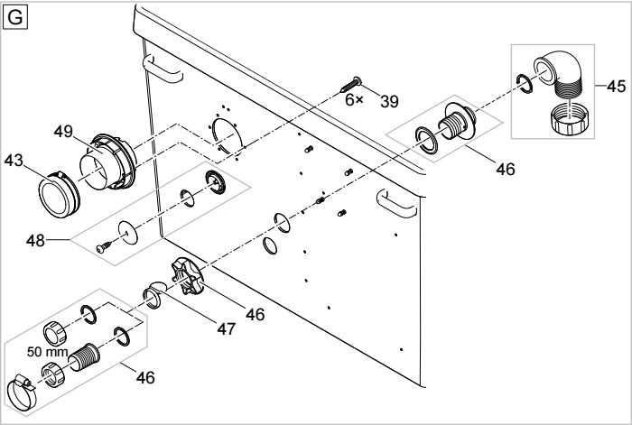 kimeneti csatlakozók 3 × DN 110 / 2 × DN 150
