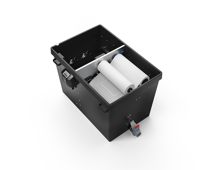 Kristálytiszta víz és inspiráló mélységélesség a koi-tóban: Ezt a ProfiClear Premium Fleece 750-ben a mechanikus mélységi szűrés és a nagyméretű szűrőbiológia rendkívül hatékony kombinációja biztosítja: Először is, a fleece eltávolítja a vízből a legkisebb zavarosságot és szennyeződéseket. Ezután a Hel-X szűrőközegben és a beépített ClearWave blokkokban megtelepedett baktériumok biztosítják a tisztaságot. Ez a vlies szűrő akár 38 000 literes koi tavakat is karbantart, akár 25 000 l/h áramlási sebességgel. Ez az erőteljes teljesítmény opcionálisan utólag is felszerelhető a meglévő rendszerekbe. Ez a szűrő kompatibilis a ProfiClear L sorozat moduljaival is. És intelligens: a vízhőmérséklet és a vliesfogyasztás digitális vezérlése és ellenőrzése gyors és egyszerű az OASE Control Systemhez való kapcsolódásnak köszönhetően.