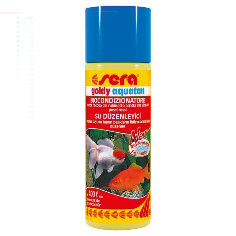 A sera goldy aquatan® a pH-semleges Bio-Protect formulával a vezetékes vizet azonnal egészséges, tiszta és az aranyhalak számára megfelelő vízzé alakítja.