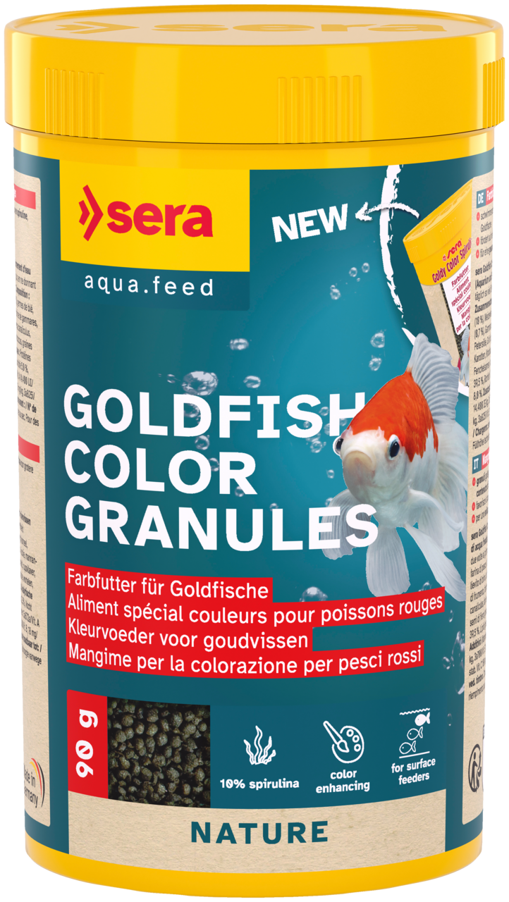 Az aranyhalakat változatos és fajnak megfelelő étrenddel kell etetni. Fiziológiailag ezeknek az állatoknak egyedülálló tulajdonságuk van: nincs gyomruk, hanem egy gyomorszerű bélszakaszuk van, és nem érzik jóllakottság érzését. A mindenevő aranyhalak ezért folyamatosan keresik a táplálékot. A túletetés elkerülése érdekében tanácsos az aranyhalakat naponta többször, könnyen emészthető, könnyen felszívódó fehérjéket és szénhidrátokat tartalmazó, kisebb adagokban etetni. A sera kiváló minőségű aranyhaleledelei kielégítik ezen hidegvízi halak táplálkozási igényeit. A Goldy Flakes és a Goldy Granules két prémium alapvető eledel, amelyek a kis, nagy és még a legigényesebb fajtákat is ellátják minden szükséges tápanyaggal. A Goldy Color eledel ideális a színfejlődés fokozására. Minden sera aranyhaleledel a „Nature” termékcsaládba tartozik, és teljesen mentes a mesterséges színezékektől és tartósítószerektől.