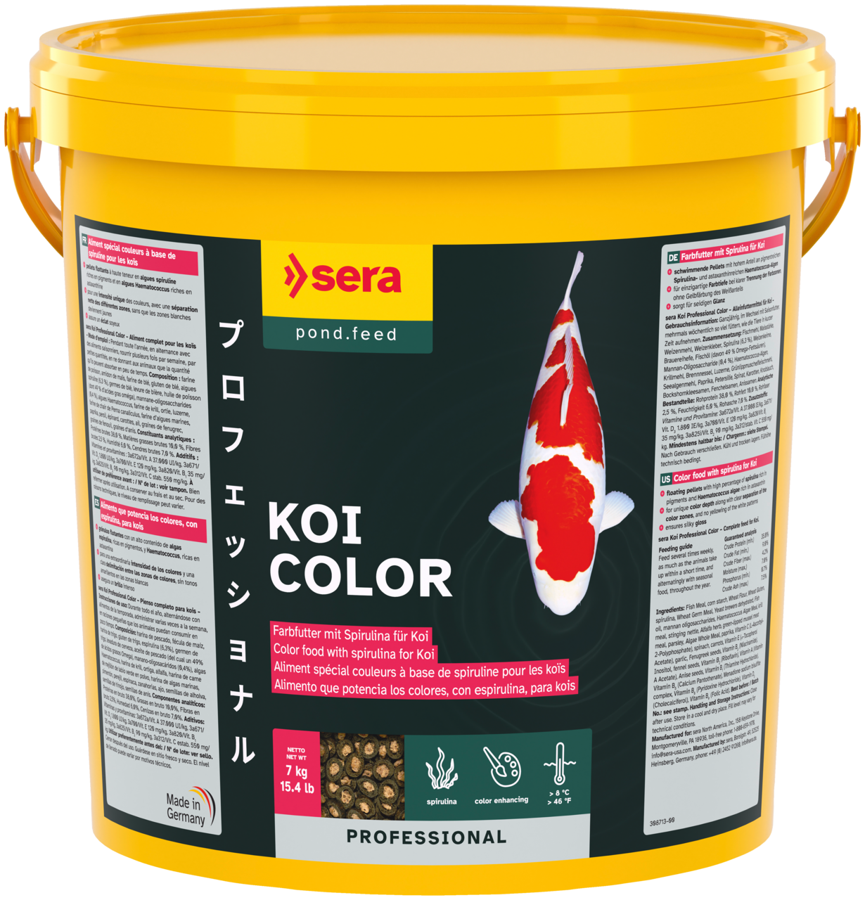 A Koi Professional termékcsaláddal a sera prémium koi eledelfajtákat kínál, amelyek a különböző évszakokban (tavasz és ősz, nyár, tél) kielégítik ezen hidegvérű halak igényeit. Ezenkívül a Koi Professional Color és a Probiotic két funkcionális táplálékfajta, amelyek egész évben etethetők. A Koi Professional Junior-t kifejezetten a kisebb koi táplálkozási igényeinek kielégítésére fejlesztették ki.
