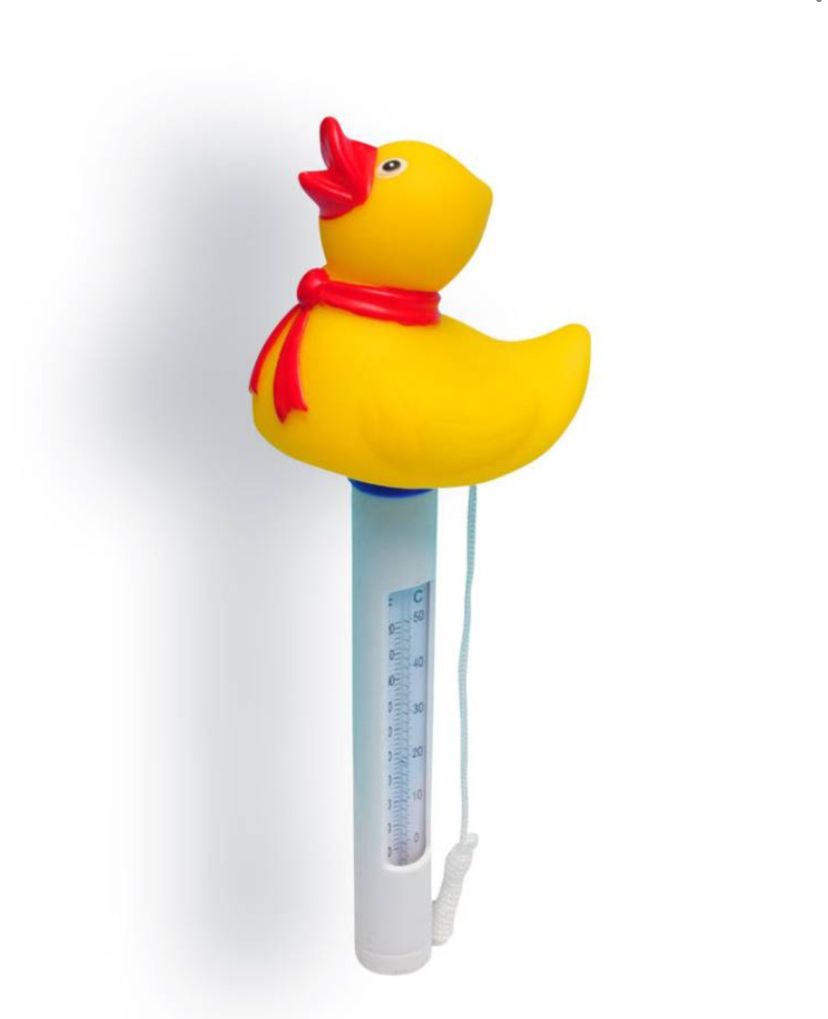 Kiköthető higanymentes úszó hőmérő a medencevíz hőmérsékletének mérésére, pontos vízelemzés végzéséhez.