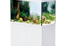Teljes szett, tökéletes összhangban, akvárium, szekrény, szűrő, LED világítás. |