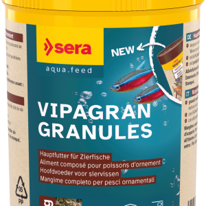 A sera vipagran egy teljesen újfajta lágy granulátum gondosan kiválogatott és kíméletesen feldolgozott nyersanyagokból. A sera vipagran valamennyi fontos vitamint, ásványi anyagot és esszenciális nyomelemet tartalmaz. A stabilizált C vitamin megnöveli az ellenálló képességet és erősíti az immunrendszert. A lágy konzisztencia és a könnyű fogyaszthatóság a sera vipagran-t ideális táplálékká teszi a legnépszerübb halak számára, mint a Fekete Molly, a Platty, Guppy és a Neonhalak.