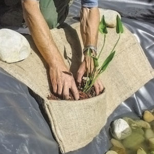 A dús növénytelepítés még a meredek tószegélyeken sem jelent gondot a kókuszdió-partzsebekkel: egyszerűen helyezze a növénypompát az 1 m hosszú kókuszszövet zsebeibe. Ezután rögzítse biztonságosan a talajhoz a tavon kívül a szállítási terjedelemben található négy fa karó segítségével. A szövet strapabíró, kétszeresen sodrott természetes kókuszrostokból készül, és stabil tartást biztosít a növényeknek a tóban, valamint körülbelül két-öt év után újrahasznosítja magát.