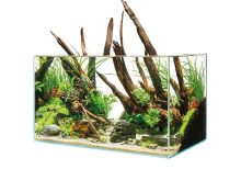 Az akvárium szélei például ferdén megmunkáltak, ami áttetsző, szinte lebegő keretet ad az elrendezésnek. |